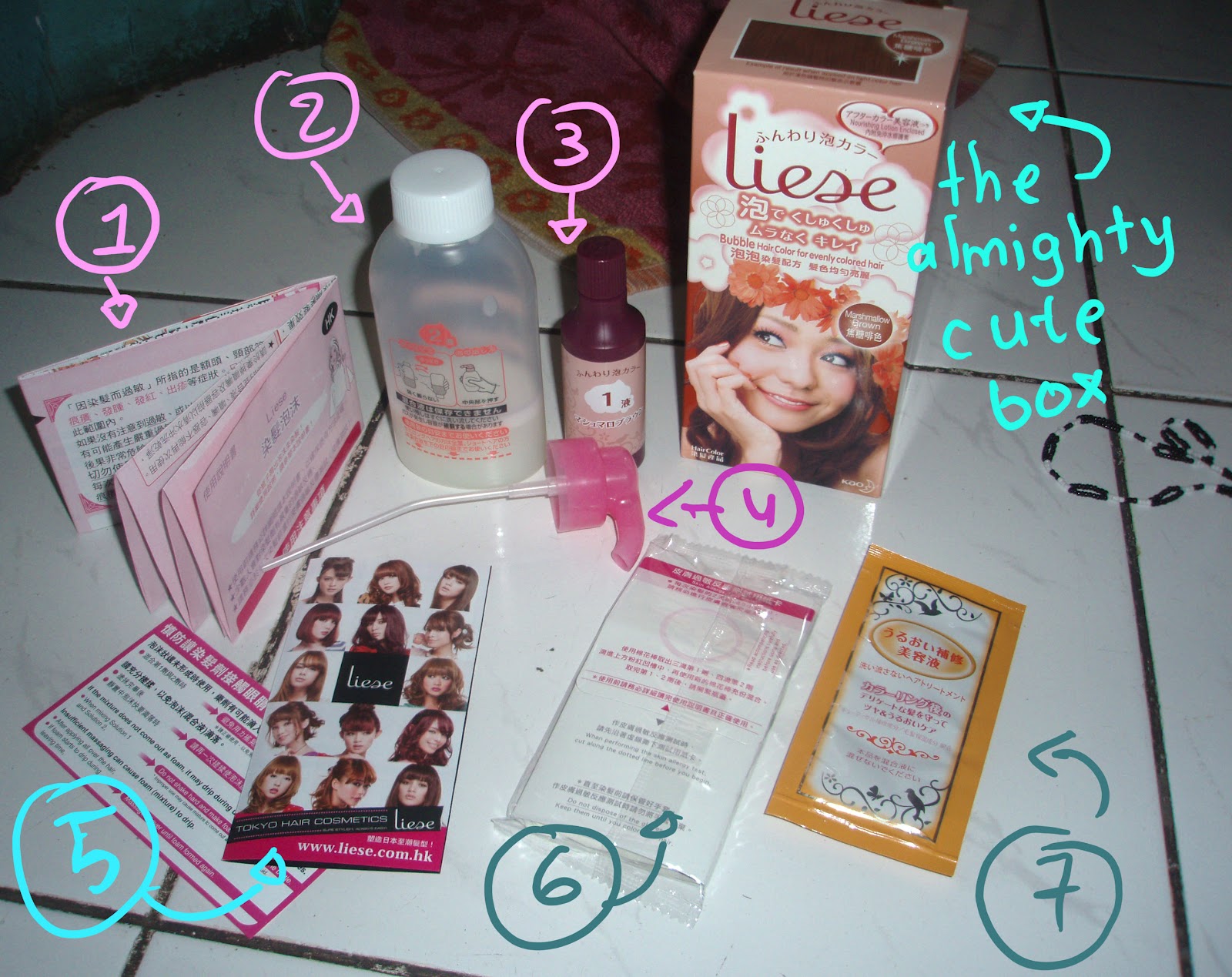 Jadi selama berminggu-minggu itu aku ngeresearch deh ke internet nyari2 review di blog. Memang sebelumnya aku udah pernah denger tentang bubble hair dye, merek pertama yang aku tahu itu Liese dan Etude, baru kemudian Palty. Setelah aku baca2 review di internet kayaknya Liese nih yang paling asoy, soalnya range warnanya paling banyak dan banyak yang bilang 1 box hair dye cukup untuk rambut panjang n tebel loh! And I was like... masa sih? o_o singkat cerita akhirnya aku memutuskan untuk beli Liese dan pilih warna 'aman' yang ga terlalu gonjreng tapi ga terlalu dark juga : Marshmallow Brown